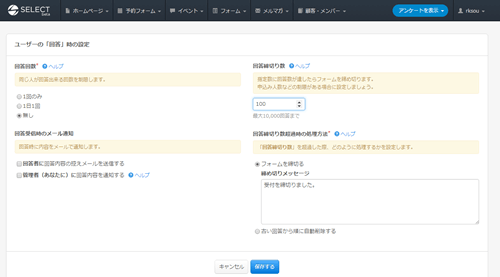 SelectTypeのメールフォームは回答する期限、あるいは回答数を設定することが可能ですから、募集期間になったら自動的にメールフォームを閉じれますし、設定した数にまで応募が達しても自動でフォームを閉じることが可能です。