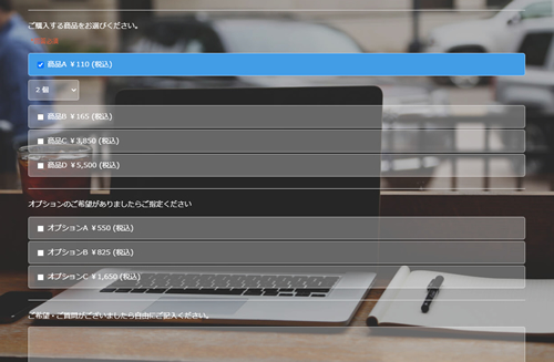 ご注文内容に応じて、自動的に・正確な合計料金を算出する注文フォームが作成可能です。