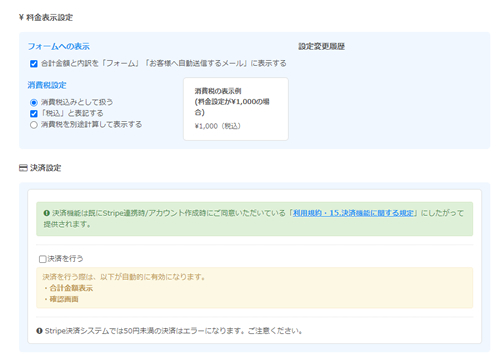 また消費税を外税計算するか?選択を選択した数によって料金を乗算するか?料金変動はしないか?といった細やかな料金計算ルールを設定することが出来ます。