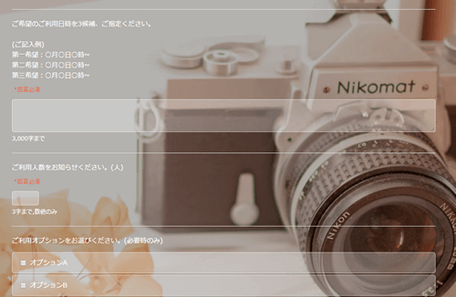 「お名前」「メール情報」「お電話番号」から「ご利用人数」「ご利用希望時間」などなど。