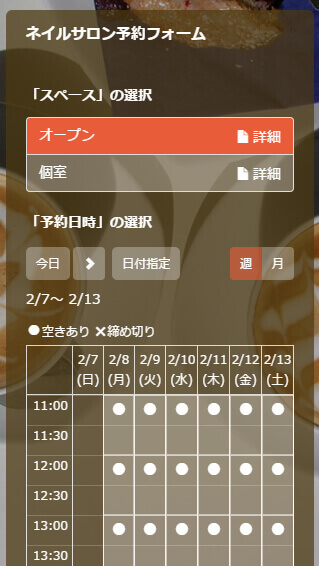 SelectTypeの予約システムなら、ネイリストごとに予約フォーム(予約カレンダー)が作れます。