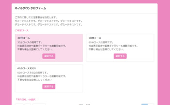 予約フォームごとに紹介文や画像ギャラリーが表示できますから、ネイリストの個性に合わせた予約カレンダーが作れます。つまりネイリスト専用の予約受付ホームページの出来上がりです。