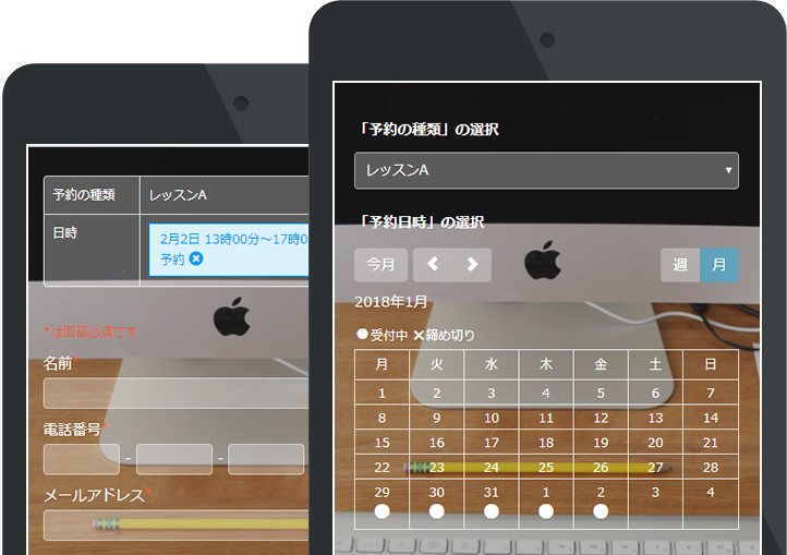 お客様がスマートフォンでもパソコンからでも、アクセスされた端末の画面サイズに応じて予約カレンダー・予約フォームを最適なサイズ、レイアウトに自動調整して表示します。