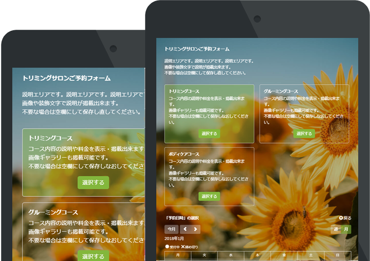 SelectTypeで作成した予約フォーム・予約カレンダーはスマホでもパソコンでもアクセス可能です。その画面サイズに応じて最適なレアウトに配置なおされ、お客様が見易いご予約カレンダー・ご予約フォームが表示されます。