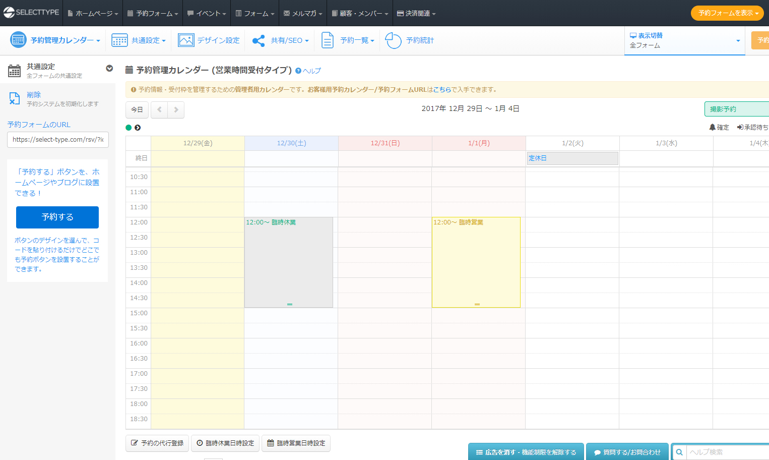 臨時の営業・休業を日時単位で細かくご調整ください!