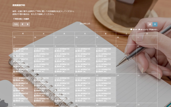 応募者様はスムーズに空き状況からご希望日をご予約出来ますし、管理側はヒューマンエラーによるダブルブッキングのリスクから解放されます。