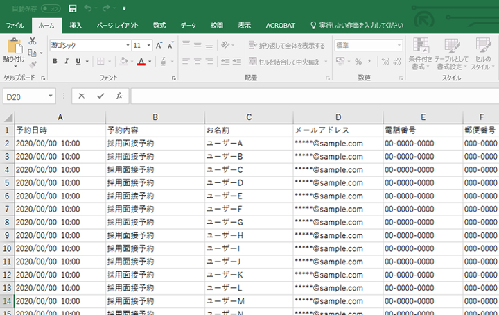 ご予約・応募情報はCSVデータとして出力することが可能です。