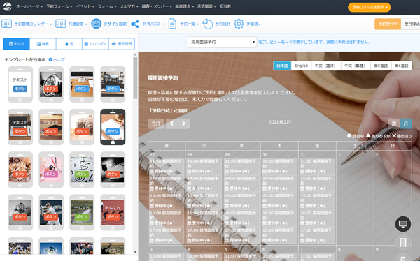 このデザイン設定機能によって予約カレンダーや応募フォームをオリジナルデザインにすることが可能です。