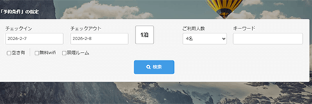 部屋タイプ別予約・人数指定検索・空室自動管理・スマホ対応まで、宿泊施設運営に必要な機能をすべて標準搭載。