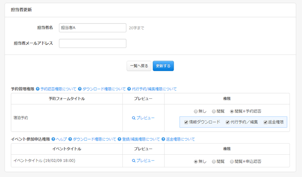 「担当者機能」は予約管理をする為のサブアカウントです。