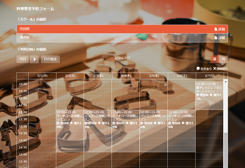 定期的な授業の予約だけでなく、体験レッスンや1DAYレッスンなどのお申し込みなど授業の形式に合わせたスケジュールで、予約フォームからのネット予約受付が可能になります。