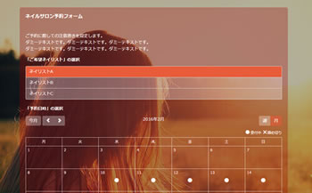 カラー、画像、パーツ構成を細かくカスタマイズ出来ますので、貴店のイメージカラー/テイストに沿った完全オリジナルデザインの予約フォームを作成することが出来ます。
