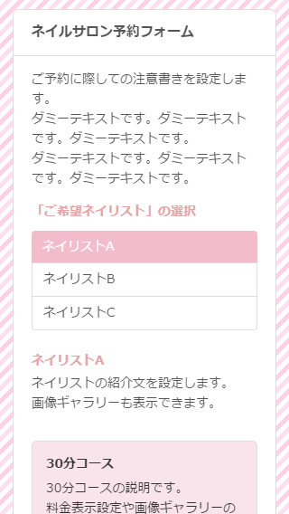 美容院・ヘアサロン・ネイルサロン・整体院など、お客様がサービスを受けるスタッフを指名したい業種に対応した予約フォームが作成出来ます。