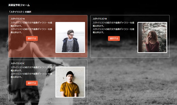 ご予約時にお客様がスタッフを指名出来る、スタッフ選択タイプの予約フォームが作成可能