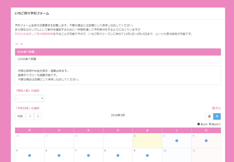 いちごのシーズンにあわせて受付期間や定員数をコントロール可能