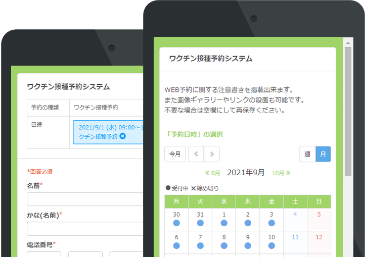 地方自治体、医療機関でのワクチン・予防接種の予約受付に対応した予約システム。