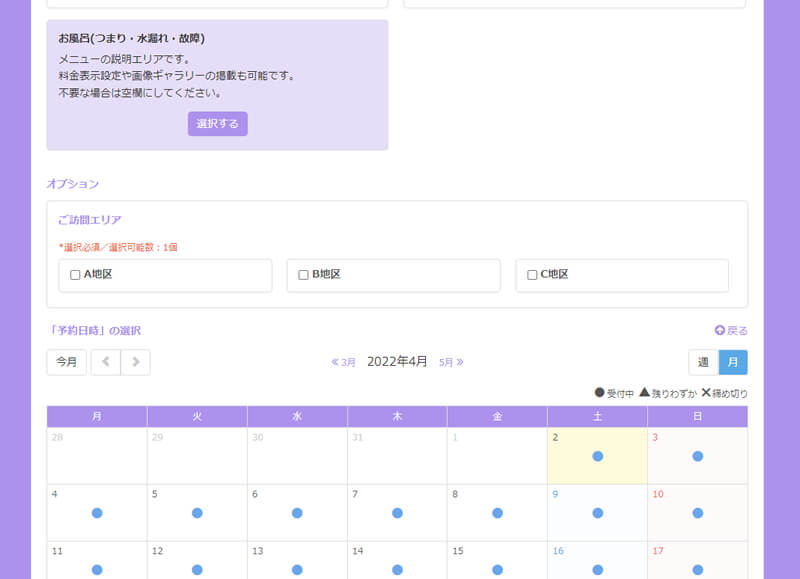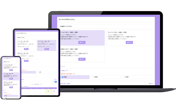 水道修理やトイレ/キッチンの水漏れ等のトラブルシューティングは緊急を要するケースが多いでしょう。SelectTypeの予約システムはリアルタイムの空き状況をお客様に提供し、パソコンのみならずスマホやタブレットからも簡単に予約申し込み出来るフローを提供します。お客様はトラブル発生時刻にかかわらず、いつでもWebから予約申し込み可能になります。