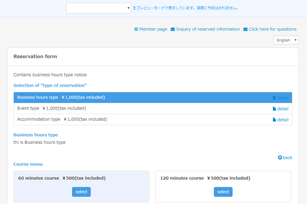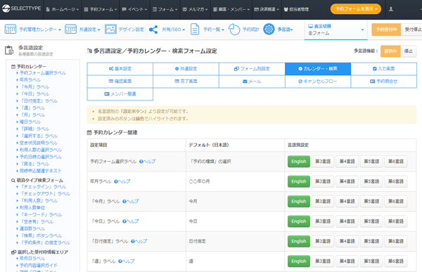 SelectTypeの予約システムはオリジナル多言語設定機能を提供しています。
